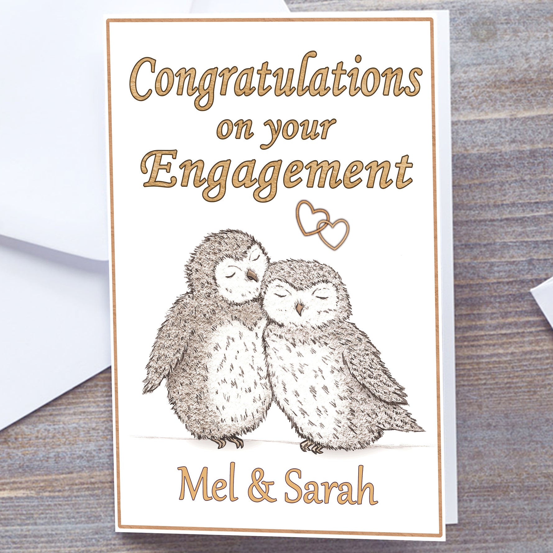 Personalised "Congratulations On Your Engagement" - A5 Snuggling Owls Card